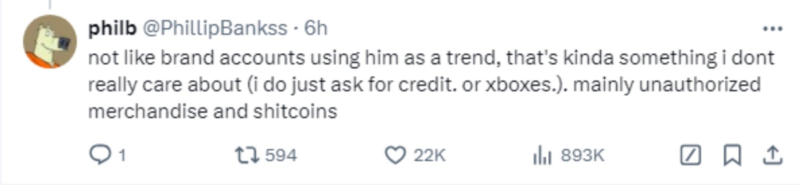 The "creator" of the meme. The person who drew the picture. His name is Phillip Banks. Phillip had the entire internet using his art for jokes. Probably the most successful thing he's done with his entire life. There's a million different directions he could have taken that. I'm not sure what those directions are, but I know when you create something that the whole fucking world is suddenly obsessed with, there's a way to capitalize off that.