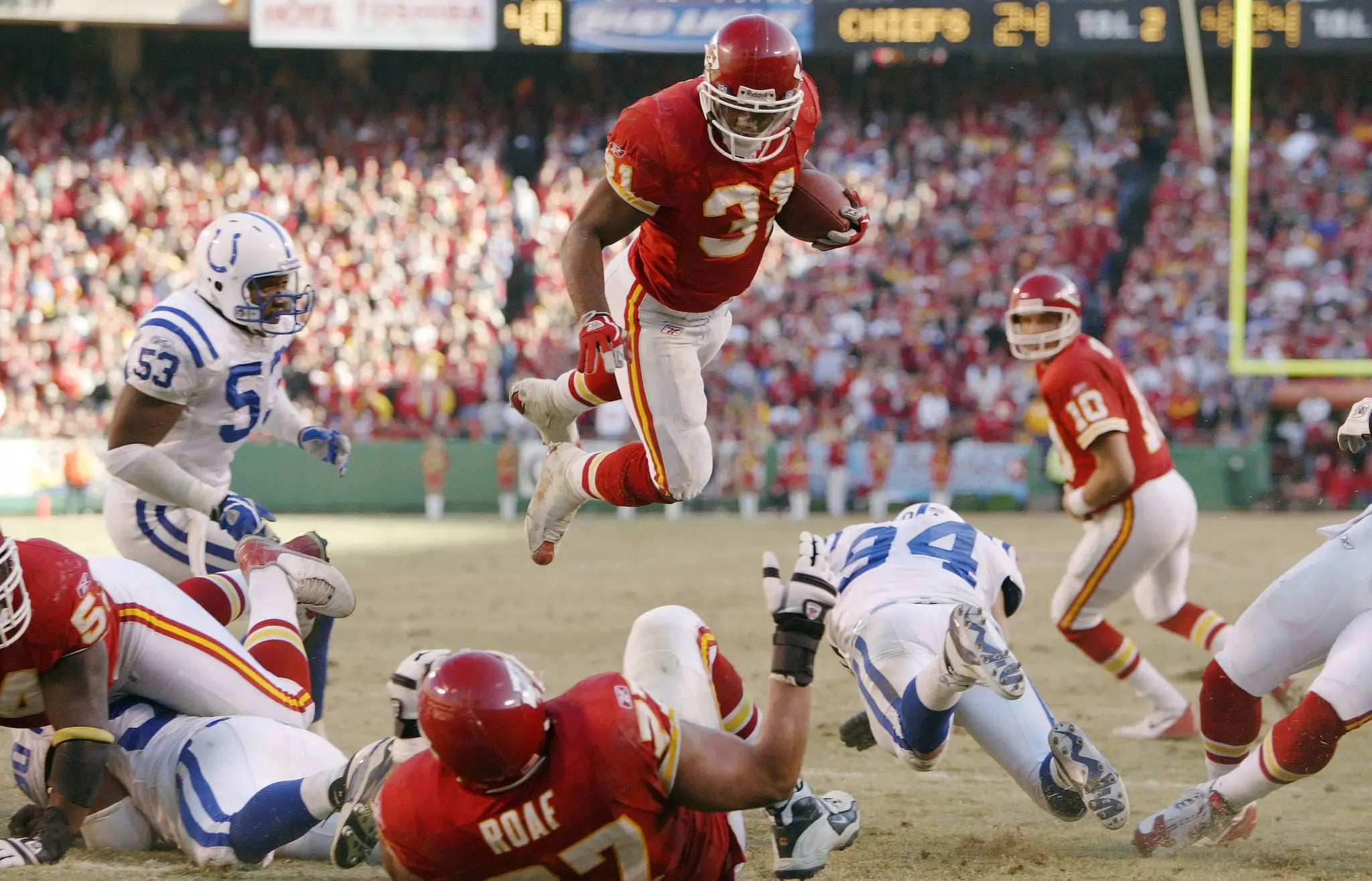 No one's higher than a Priest. Just an absolute animal. The Chiefs would win 56-10 vs Atlanta in game one of this streak in which Holmes solved for four scores, and 180 total yards. The encore would be vs the Colts in a 45-35 win where he'd stack another 225 yards and three scores. That's over 400 yards of offense during a two game stretch. For one player.