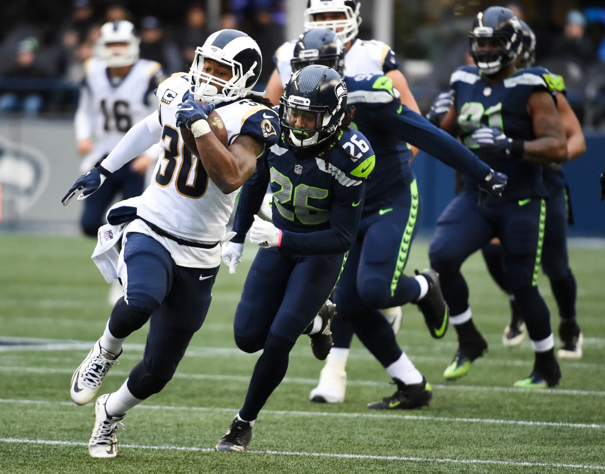 What is it with running backs just going OFF during fantasy playoffs? December football, baby. That's what. Ground and pound. At Seattle to start things out, Gurley racked up 152 on the ground, and 28 through the air with four total scores. He'd follow that up with 118 on the ground, 158 through the air and two scores the following week vs the Titans. That'd be Week 16 - the fantasy championship game (unless you play in some cracker jack league that ends the week the football season ends).