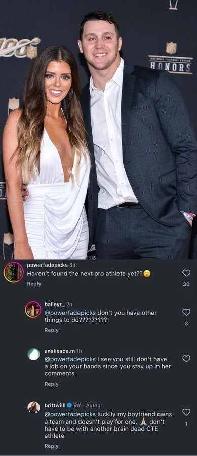 Josh Allen's Ex Brittany Williams Seems to Have Called Him 'a Brain Dead Athlete' Before Playing the 'I Was Hacked' Card