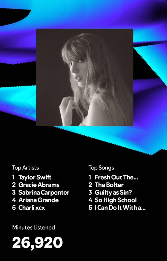 It's that time of year again- Spotify Wrapped! There are few pure things in this world anymore, but Wrapped is one of the few. I love looking at other people's most listened to music of the year. I am always curious- are more people like me and listen to the same music year in and year out, listen to mostly the same bands, and struggle to find new music or artists/bands they like? Or do people continually evolve, and 2023 vs 2024 Wrapped are completely different?