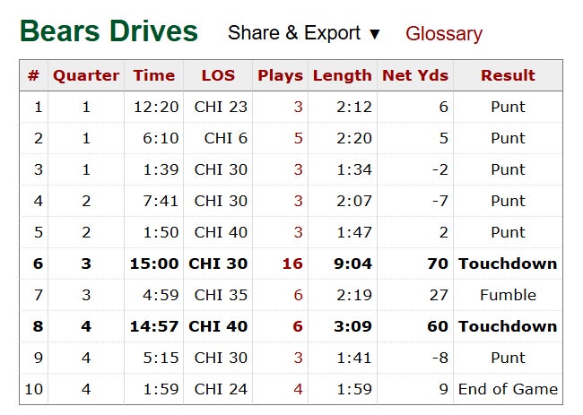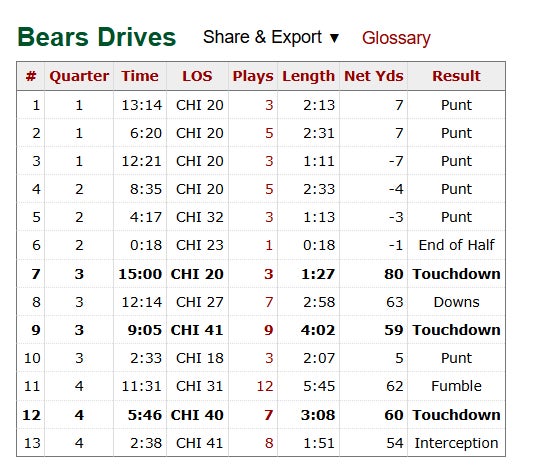 Here are the Bears drives on that game. Say what you will. No turnovers. In fact, neither did the Bears on Sunday.