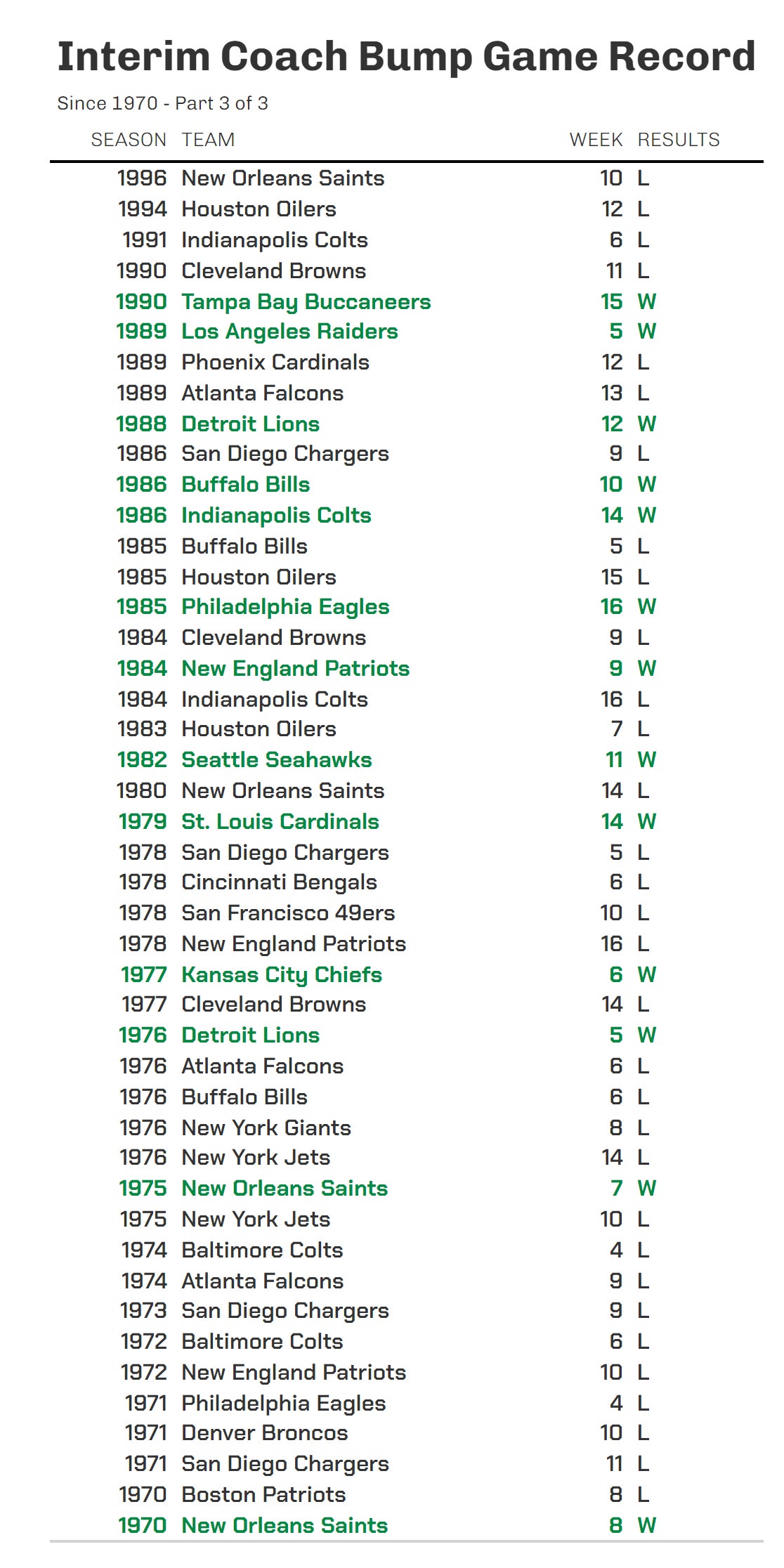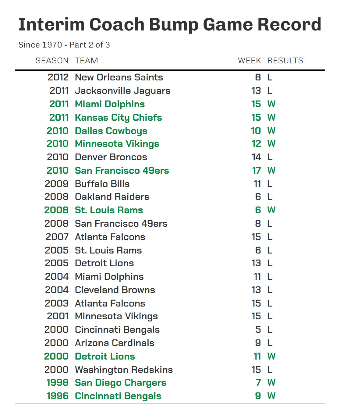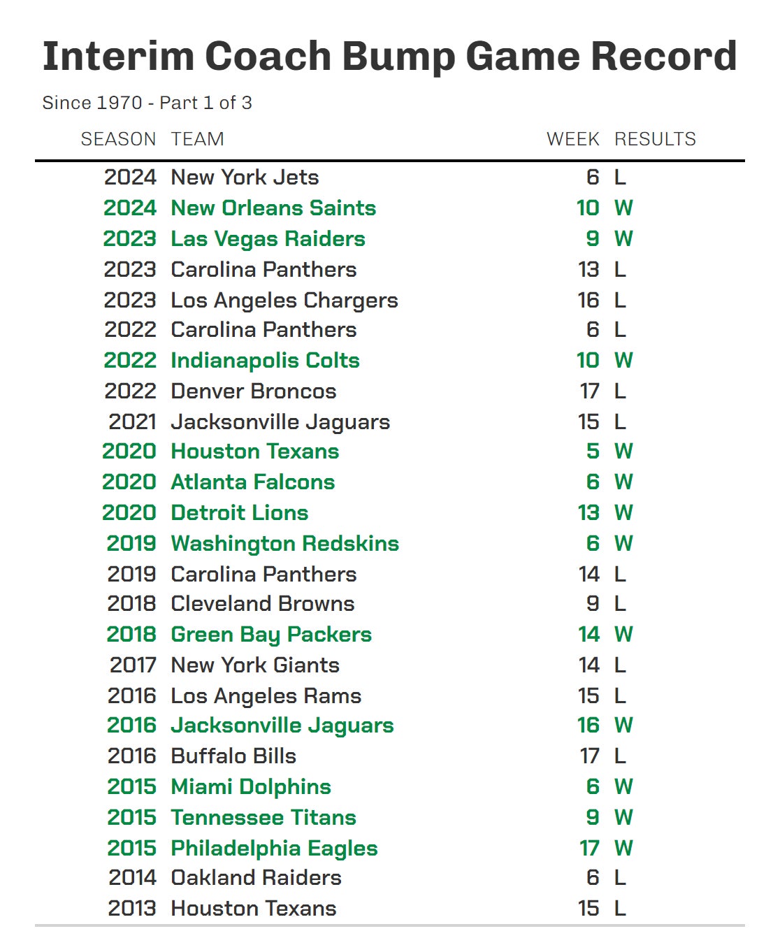 Sad Stat #2 - Interim head coaches are now just 34-62 in their first game after a coach was fired/resigned
