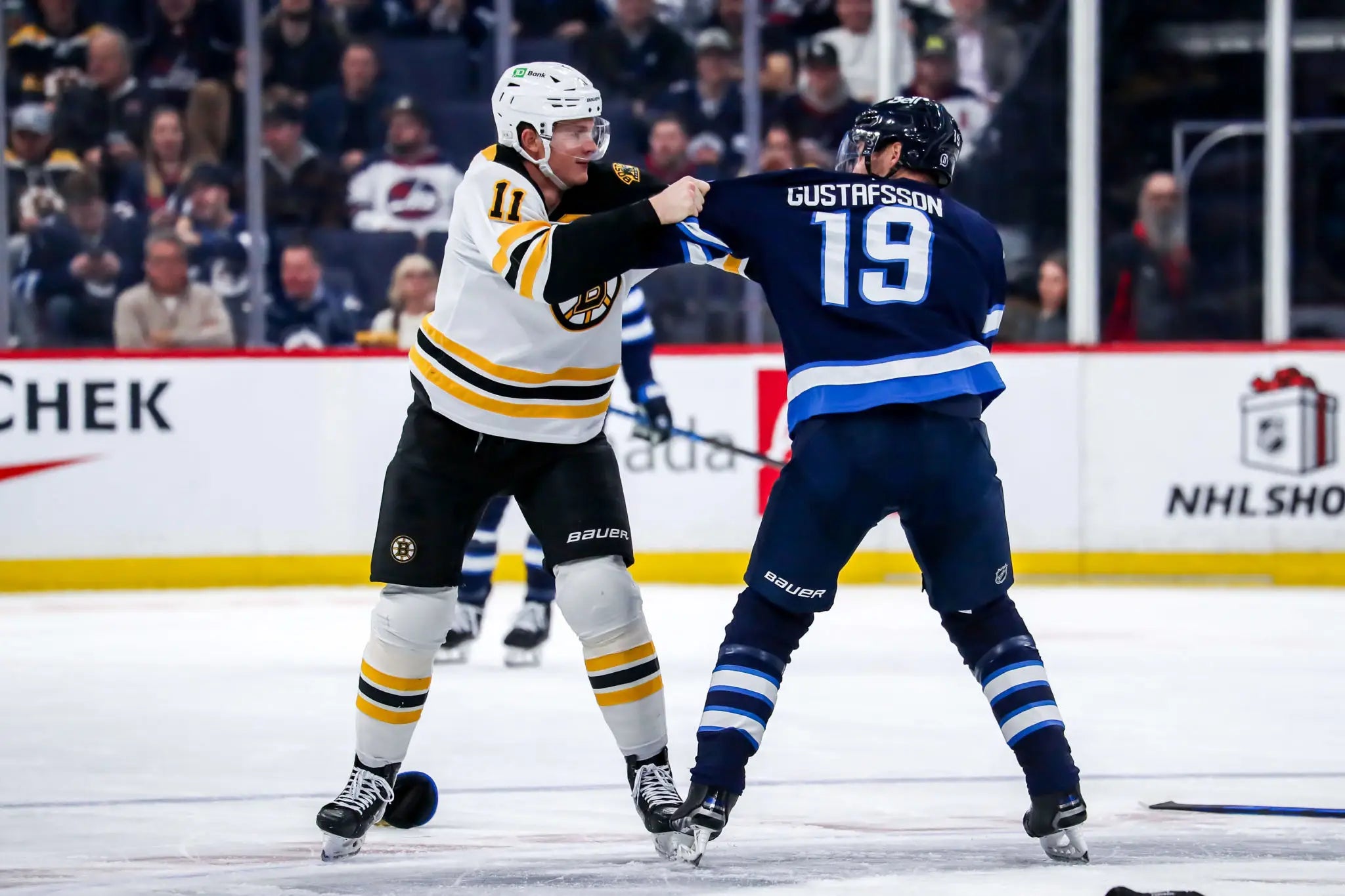 So when the Bruins were getting absolutely shit pumped last night in Winnipeg 6-1 in the 3rd period, Trent Frederic thought to himself "it's Trent Frederic time". So what does he do? He goes out and finds the one guy on the ice who has never fought before, and goes after him. David Gustafsson, a Swede playing in his 3rd game of the season, ends up having to drop the gloves with big, bad Trent Frederic.