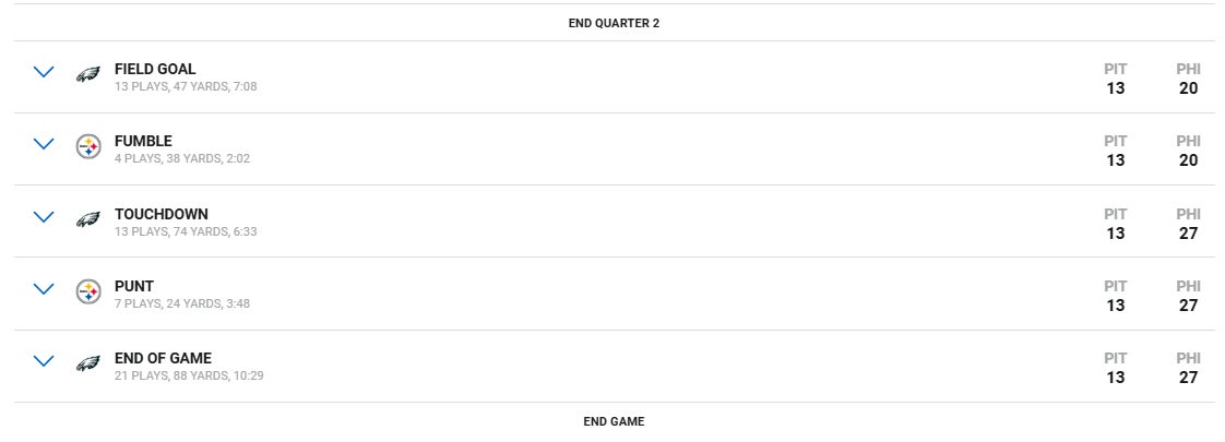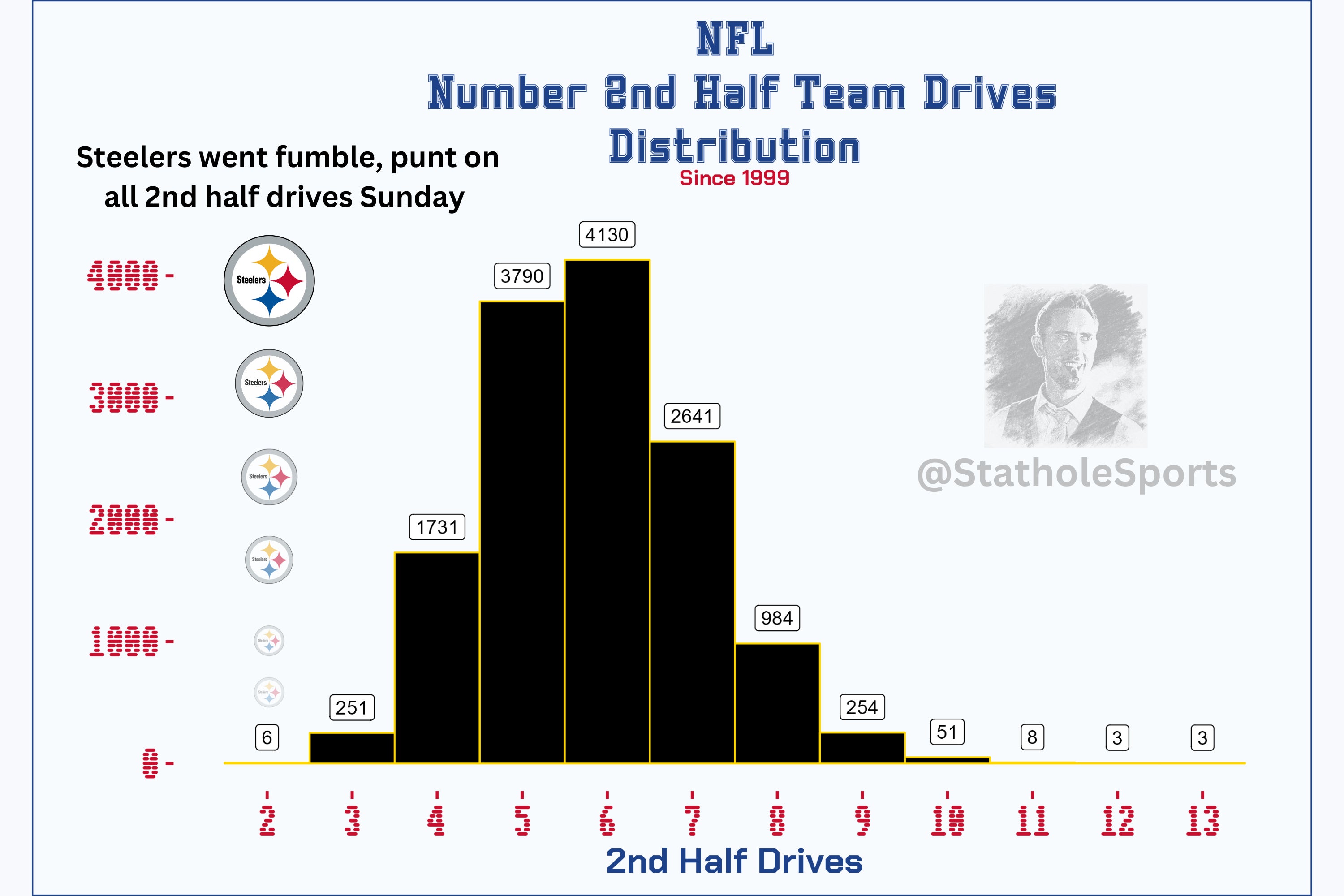 But who would have thought the Steelers wouldn't have gotten the ball back at all? They are one of just six teams now to have only two 2nd half drives since drive data was publicly logged in the late 90s.