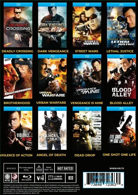 Seagal plays Elijah Kane, the leader of an elite undercover police unit known as the “Special Investigation Unit” in Seattle, Washington. The series follows Kane and his team as they tackle various criminal activities, from drug trafficking to organized crime, using a mix of traditional law enforcement techniques and martial arts. Every movie offers a high-adrenaline adventure. The movies are known for their intense action sequences and Seagal’s signature martial arts moves. Each episode typically features high-stakes confrontations and complex investigations, with Kane’s team often operating on the edge of the law to bring criminals to justice. The show also delves into the personal lives and backgrounds of the team members, adding depth to the characters and their motivations. The films stands out for their gritty portrayal of crime-fighting and Seagal’s commanding presence as the lead character. Despite its relatively short run, “True Justice” remains a notable entry in Steven Seagal’s extensive filmography, showcasing his enduring appeal in the action genre and as an action star. Region 1 (USA/Canada) | Approx 18 hrs. | Closed Captioning | 16:9