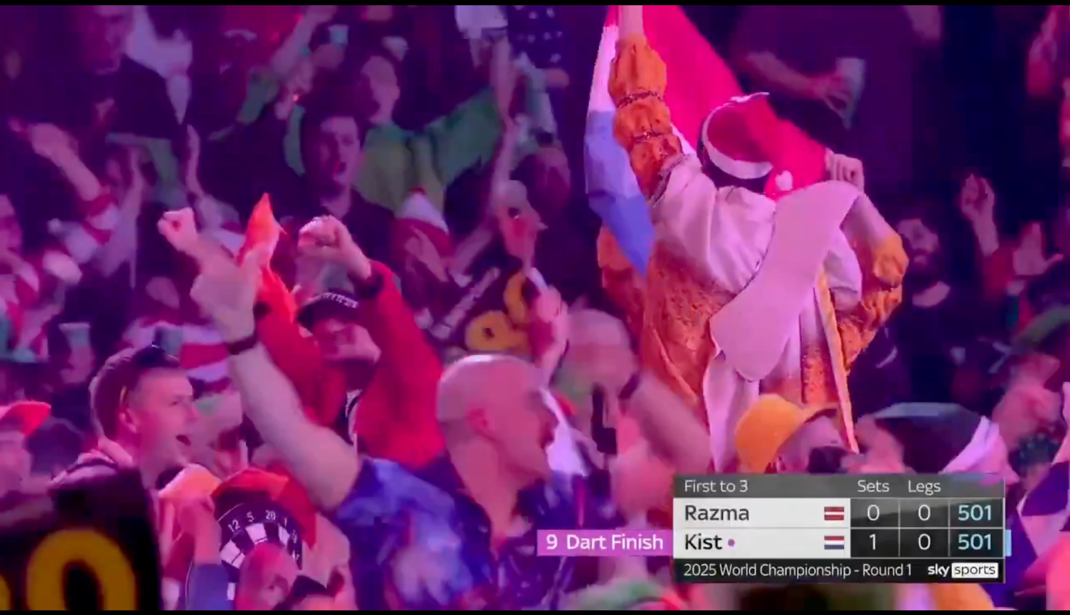 The Dutchman put together a perfect leg to clinch the first set against Madars Razma, sending the Alexandra Palace into raptures. He punched the air in delight after pinning double-12 to seal the first nine at the worlds since the 2023 final.