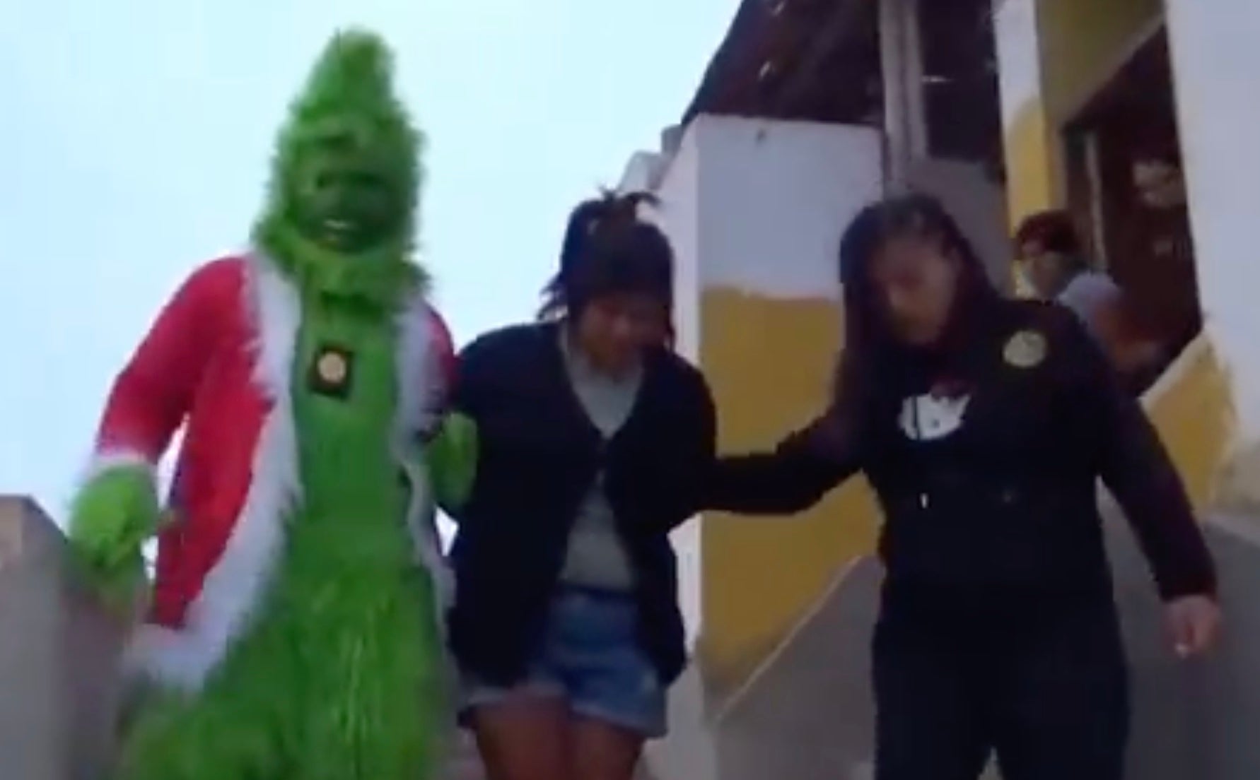 Policia Nacional Del Peru Carried Out a Real-Life Drug Bust With Officer Dressed in Full Grinch Costume