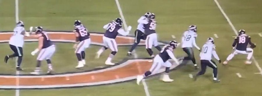 Anyone who has paid even a sliver of attention to the Bears this year knows that Caleb Williams has been the lone (semi) bright spot on a team mired in dysfunction. Sure, his stats from Thursday night—16-for-28 for 122 yards and an interception- weren’t inspiring. (But he made plays like this that do show promise.)