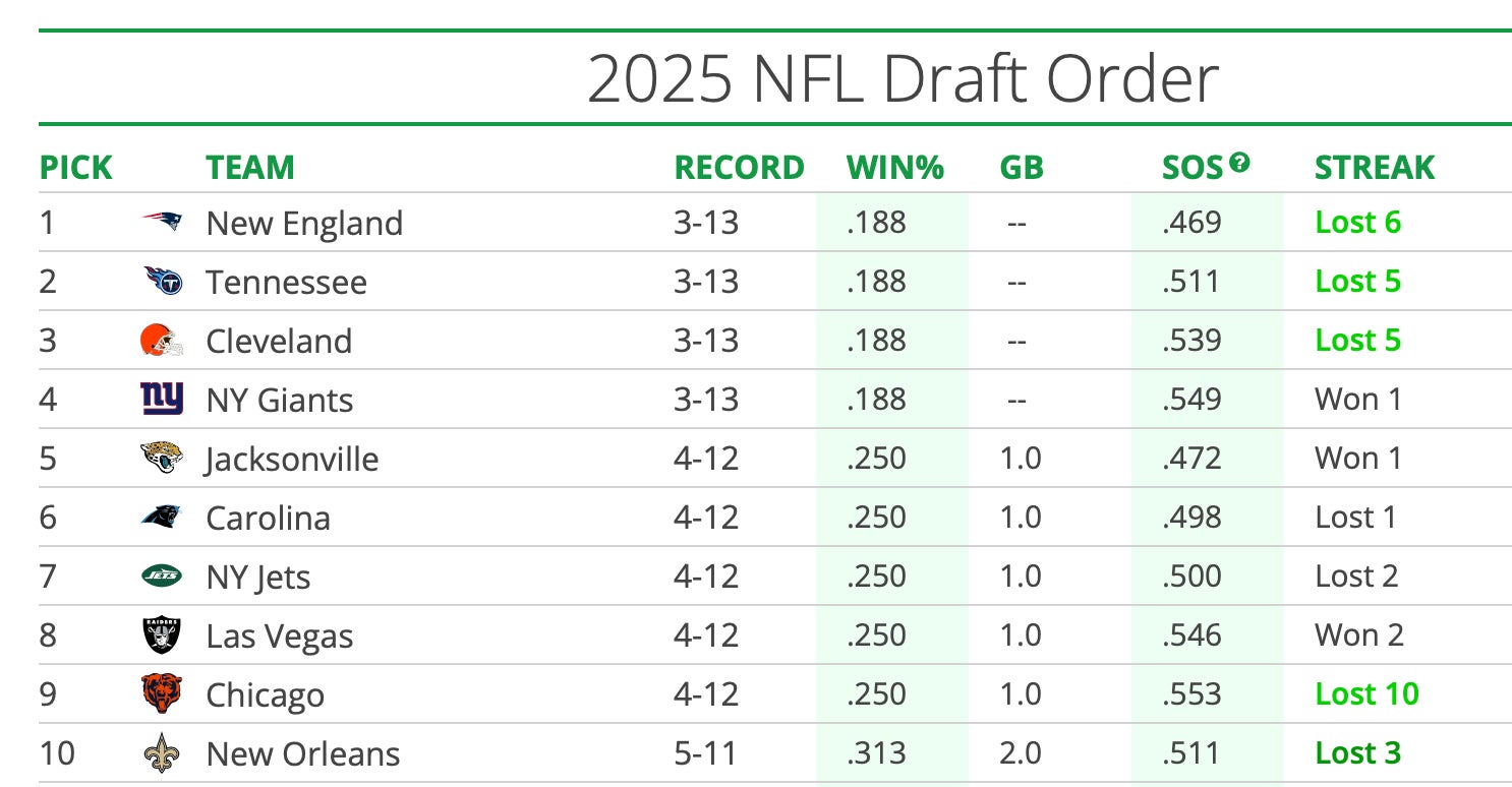 How fucking dumb are these teams in this graphic that are WINNING games? Shoutout to the Bears. They understand the assignment! Now can we get so lucky that the Pats or Titans fall into the same trap next week? I mean, honestly, today is the first time I've been excited about the Browns, sans the Steelers game, in months. #3 overall pick! I'm not sure what I want them to do with it but the OPTIONS ARE THERE. The Pats have to trade #1, right? They don't want Sheduer, but someone needs him. And then that means we can either get Cam Ward (if we determine he's worth it) or Travis Hunter or trade down and get our guy and get picks back to let someone come get theirs. I don't hate trading out of 3, getting Will Campbell at like 6, and getting another pick for our troubles to still bolster down our line for the future.