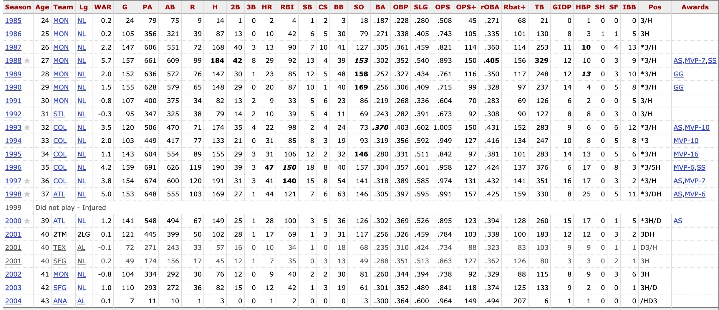 Add it all up and Galarraga may not be a Hall of Famer. But there should be at least one person hyping him up on social media every year using cherry picked stats for Galarraga and against the players who may not deserve to be in Cooperstown over him.