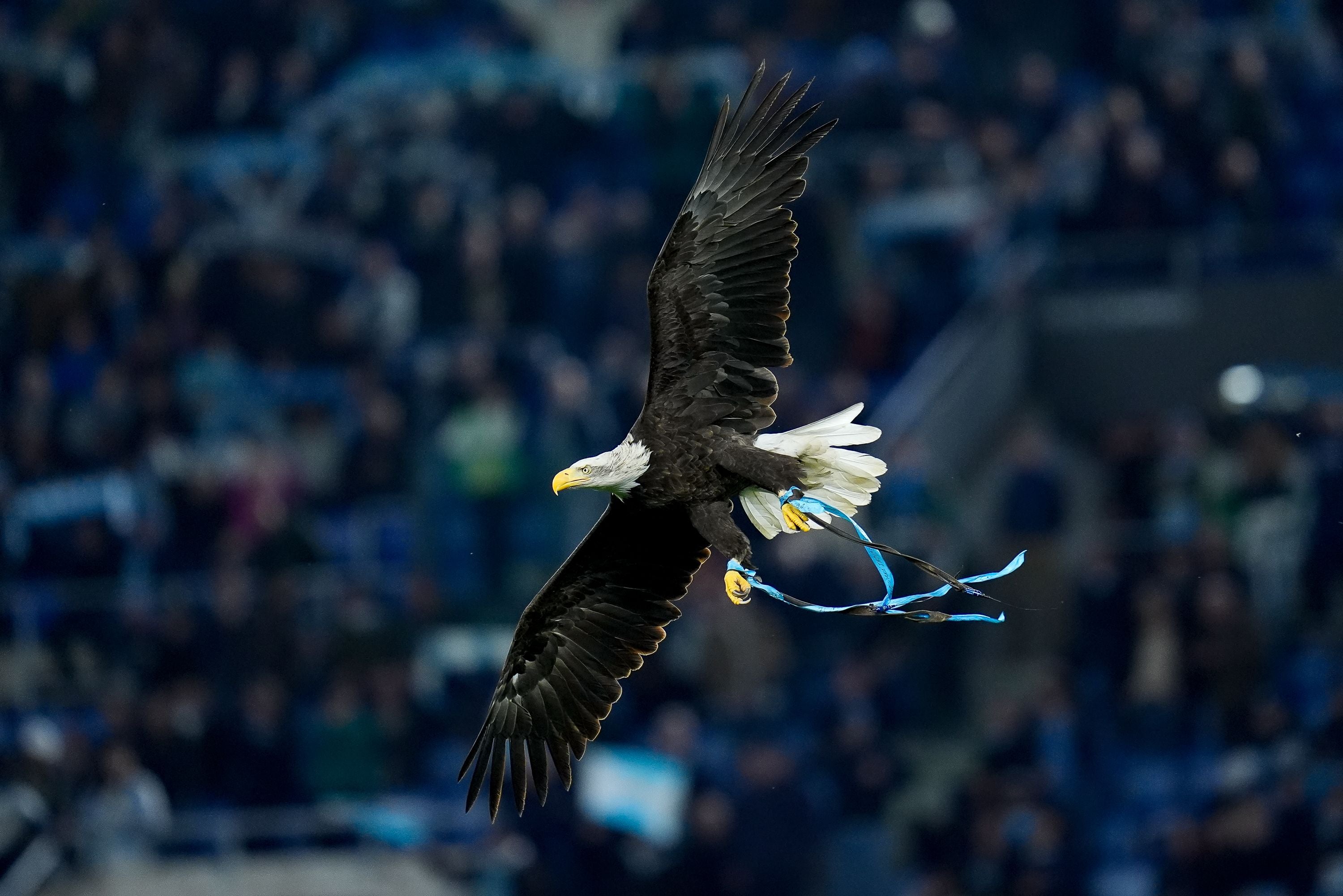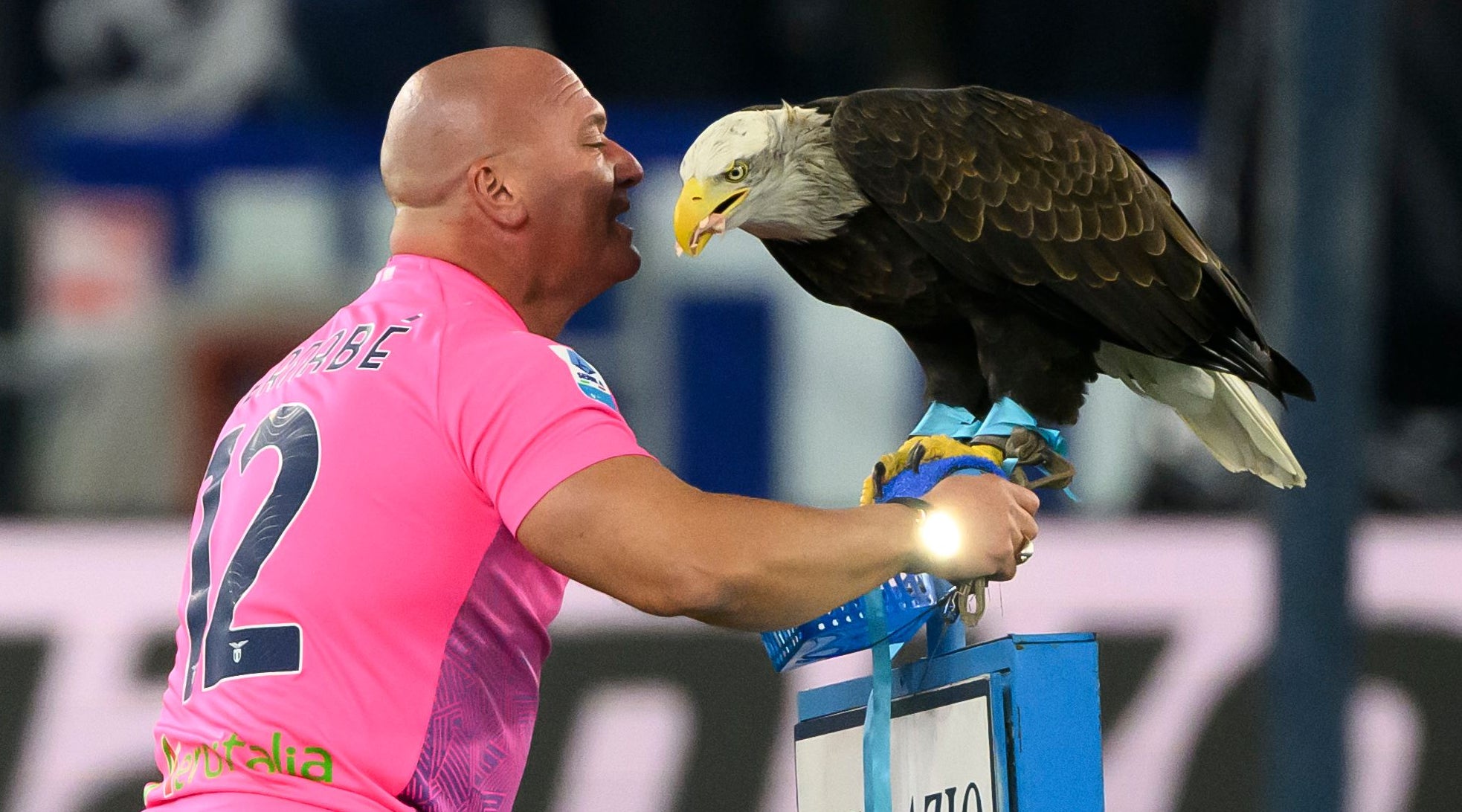Falconer Juan Bernabe has handled the eagle, named Olimpia, since the 2010-11 season and flies the bird over the Serie A club's Stadio Olimpico before matches.