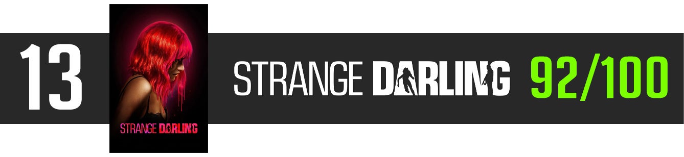 Damn, what a movie. Told in a non-linear way, everything about 'Strange Darling' will have you firmly planted on the edge of your seat with your mind racing. It takes a premise and story that is rather simple and flips it on its head. Even if you figure out what's going on, you won't feel any less engaged with the characters & story.