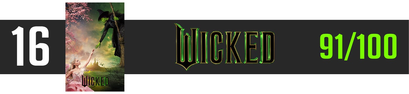 Easily one of the best stage-to-screen adaptations of a Broadway show we have ever seen. All of the big musical numbers are incredible, and a perfect blend of being cinematic, yet also keeping that classic stage feel. Cynthia Erivo & Ariana Grande are dynamic in their roles, and Jonathan Bailey's big moment will likely be a (deserved) crowd favorite. From the start to its explosive ending (one of 2024's best), 'Wicked' is a pretty surprising home run.