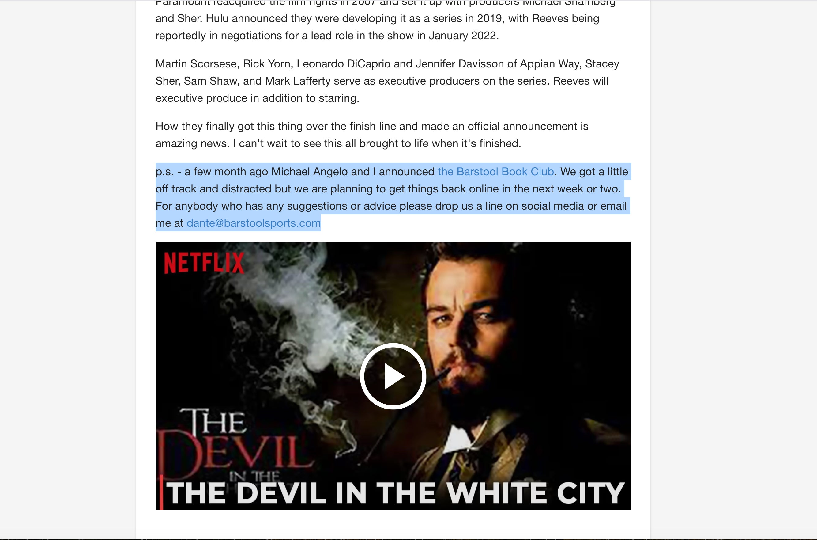 Plus, Chicago’s World’s Fair was this big symbol of hope and progress, so it creates this insane contrast between the excitement of the fair and the darkness lurking underneath. It’s like Scorsese and DiCaprio are going to give us Gangs of New York meets Silence of The Lambs meets a real-life horror story. And I’m all in.