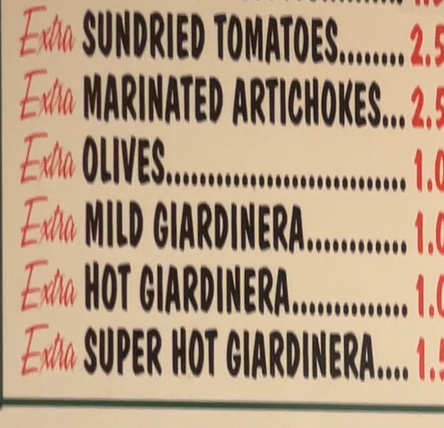And last thing before I move on from Bari… I mentioned in the video that they have a MILD, HOT, and also a SUPER HOT option for their giardineira…