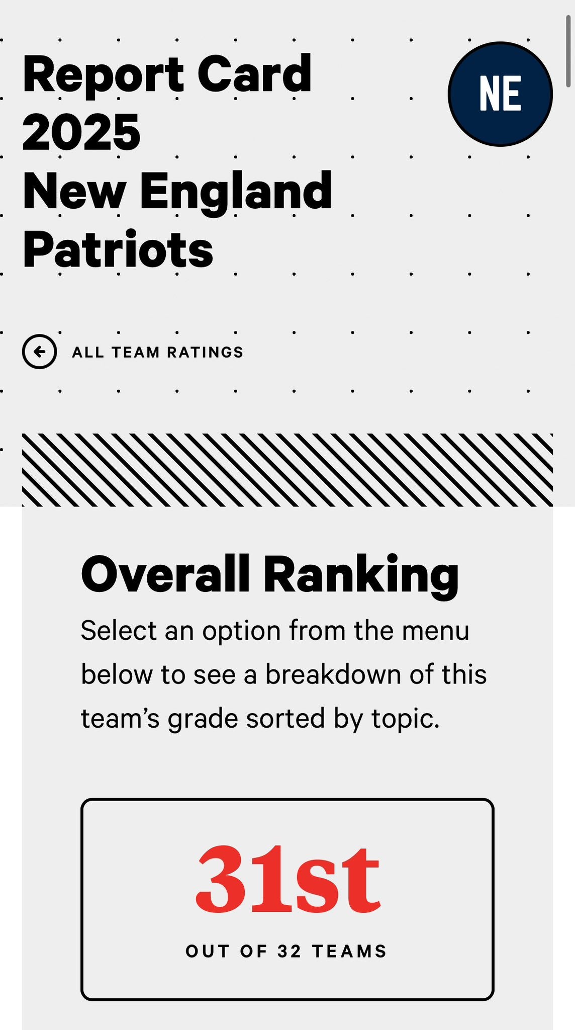 NFLPA - The Patriots rank 31st overall this season, but there are signs of progress. Following last year’s report, owner Robert Kraft announced a $50 million investment in a new facility adjacent to the stadium, which broke ground in December and is expected to open in 2026.