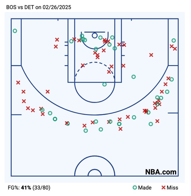 - The Celts insane 3pt shooting in the 2nd quarter quickly erased a 15 point lead and got things tied into halftime, but that was misleading. It was mostly just cologne that covered up a dogshit performance. The Celts weren't playing well, they were making shots. Their offensive process wasn't all that great, guys just buried shots. Defensively the holes still existed, and it's exactly why once we got to the 3rd quarter the Pistons immediately rebuilt their lead. Once the insane shotmaking from the Celts went away, we got the same type of result that made up 95% of the game.