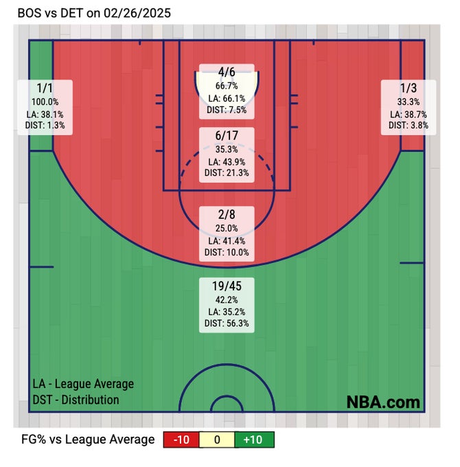 And just like that, in a battle of two of the longest current winning streaks in the league (7 vs 6), it is the Pistons that walk away with theirs still intact. A tough one to drop on the second night of a back to back without Jaylen Brown, but make no mistake, the Pistons earned every bit of that ass kicking. Usually winning streaks tend to end with some sort of brutal disgusting blowout loss, so in some ways a game like this isn't all that surprising, especially with how the Pistons have been playing.