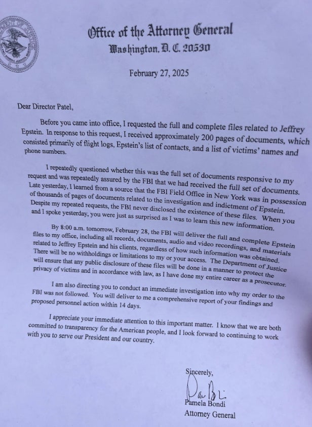 Since then? Nothing. Until this afternoon. When Bondi released this letter she sent to FBI Director Kash Patel explaining that the New York Field Office is ignoring the order to release the files. And one credible journalist has a theory as to why: