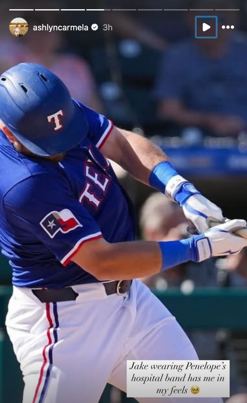 After Being Away From The Rangers This Entire Week While His 4-Month Old Daughter Had Open Heart Surgery, Jake Burger Got To Camp At 7:45 AM, Didn't Sleep And Then Crushed A Home Run While Wearing His Daughter's Hospital Bracelet