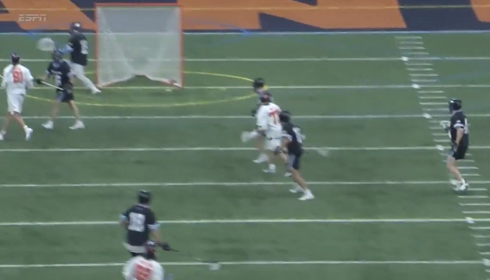 You know a hidden ball trick works to perfection when you end up making the broadcasters look like a couple of certified dopes. For anyone who isn't tapped in, 22 on Syracuse is Joey Spallina. He's one of the most creative and skilled players in the country, so the fact that he was able to bomb that bottom right corner from 30+ yards wasn't the most shocking part of this play.