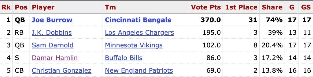 Despite the unfortunate fake punt incident, you'd think Damar Hamlin would still have been a shoe-in for Comeback Player of The Year. The minute he stepped back on the field, people penciled him in for the award. But nobody expected Joe Flacco to rise from dead as well, and throw for 13 TD's & 300+ YPG to lead the Cleveland Browns to the playoffs. Joe Flacco ripped Comeback Player of The Year right from Damar Hamlin's warm, alive hands.