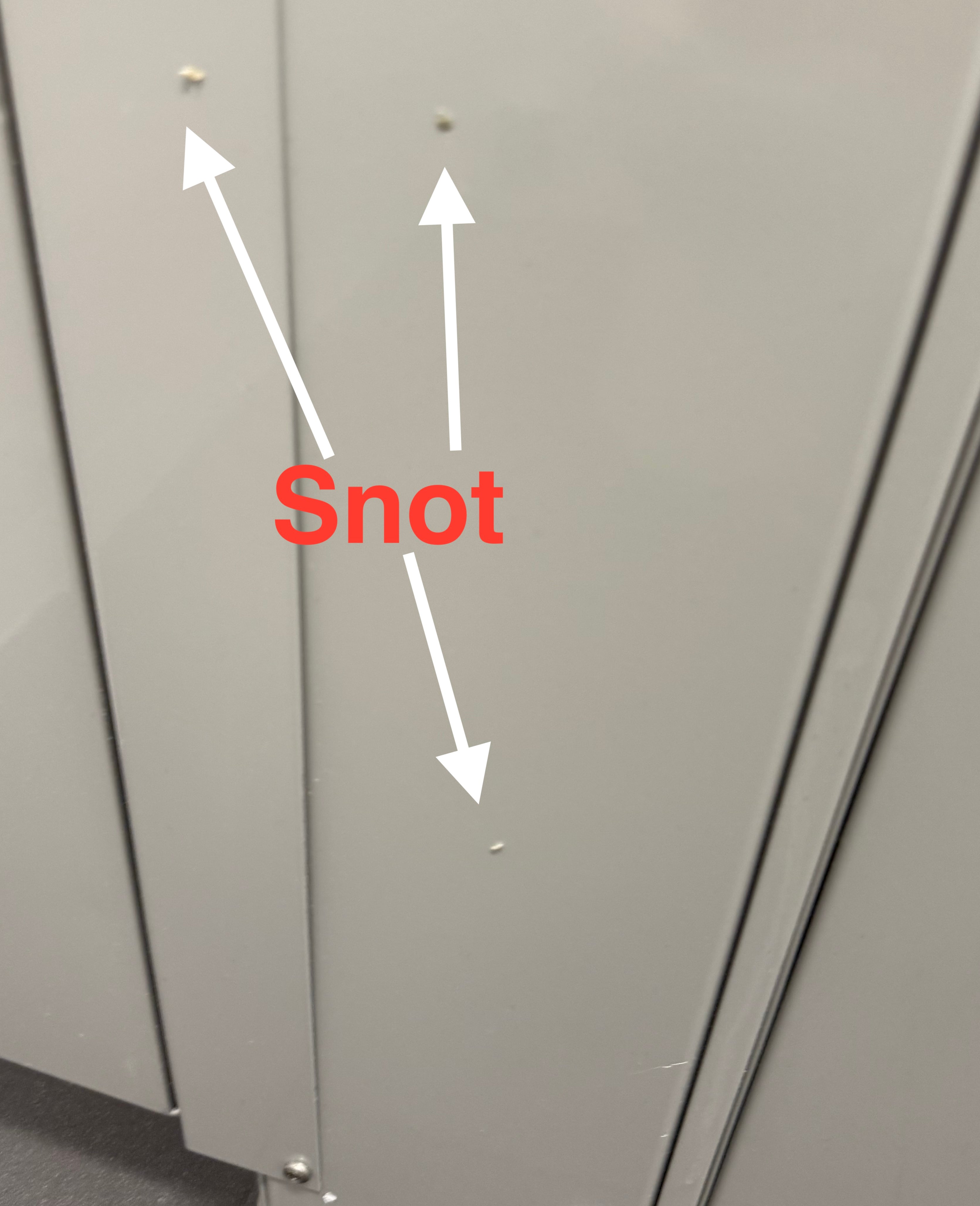 I was in the more spacious handicapped stall and on the wall directly across from the toilet I was filling were three different globs of snot just randomly pressed onto the wall and door.