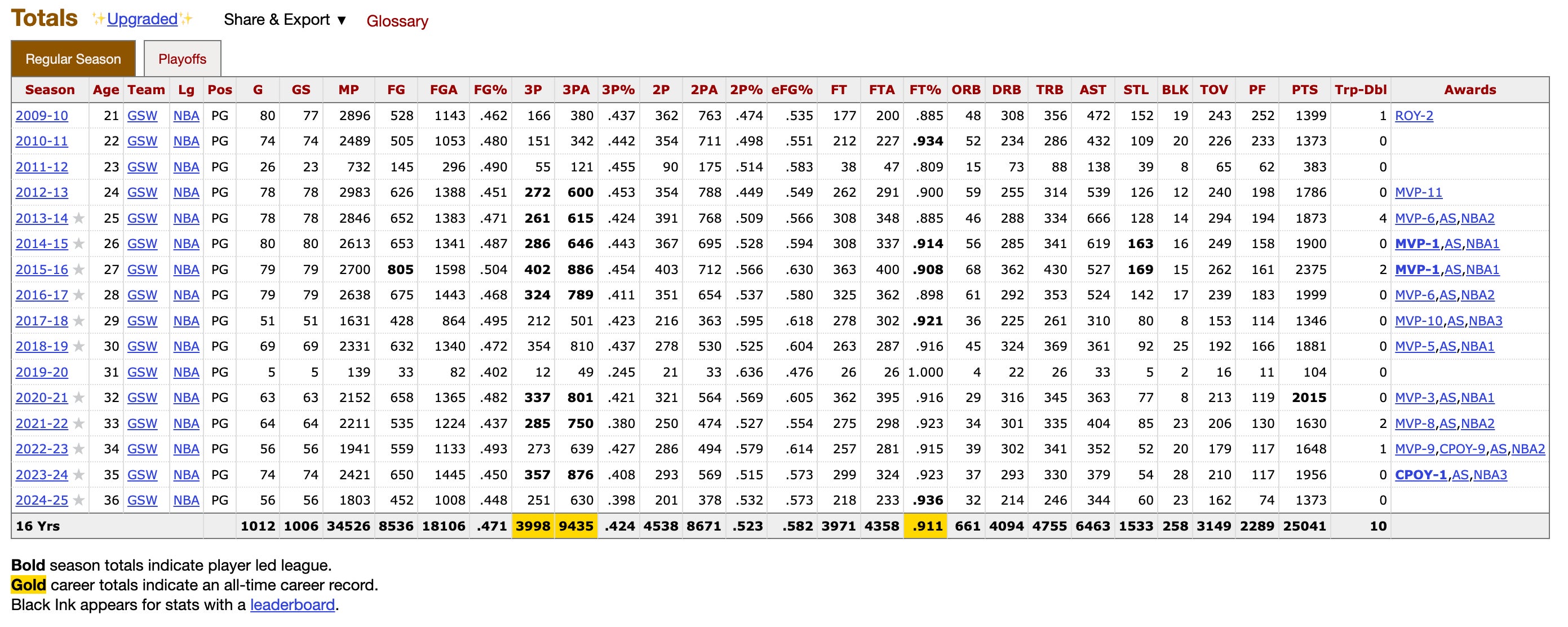 There's a reason why there's only one Steph Curry. I'm just happy I got to witness it (minus 2022, that was bullshit).