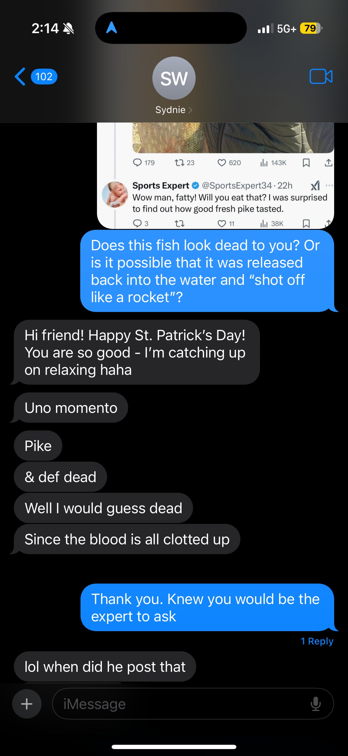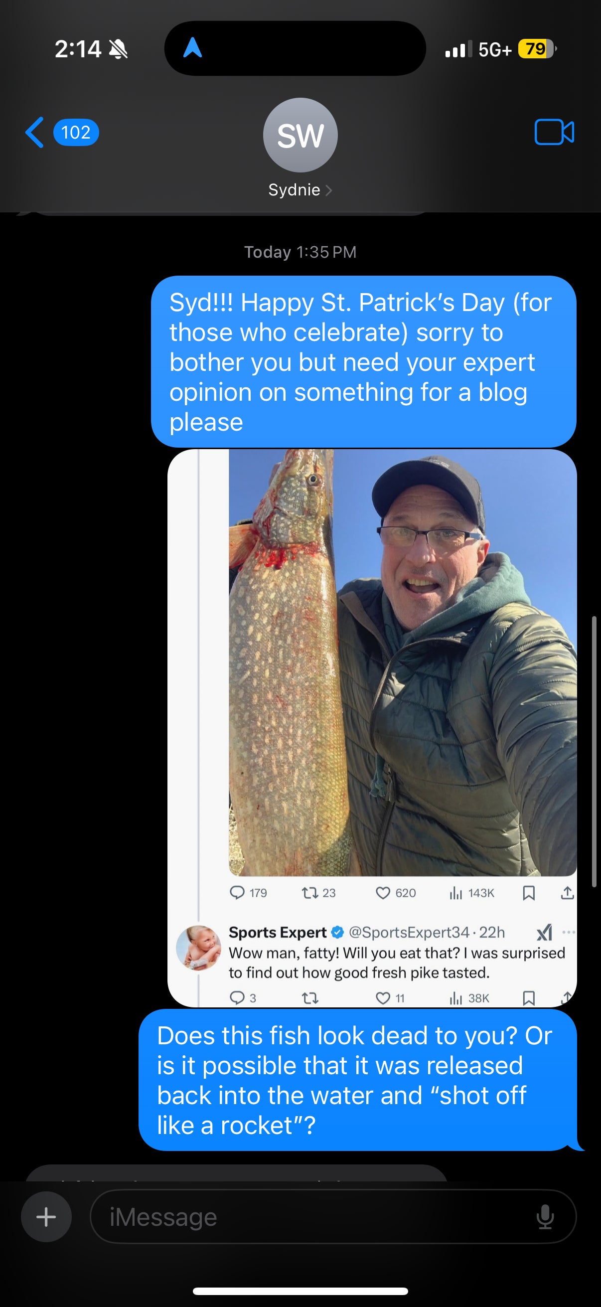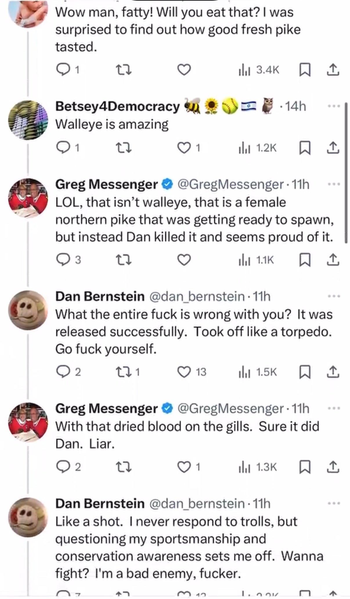 So once again, for Dan to be ridiculed on social media, nay, CHASTISED, and this clown trying to publicly humiliate him, all while Dan was just trying to flex a little showing off a bad ass pike he caught, what the fuck did every expect?