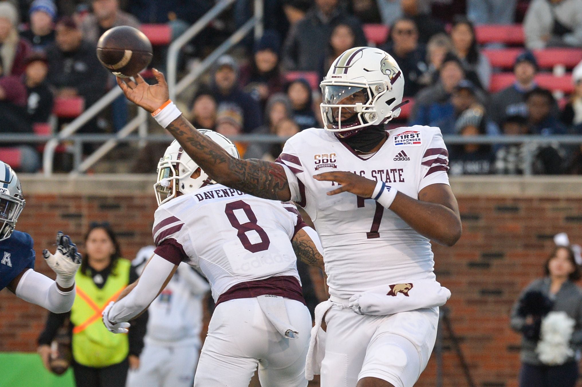 I'm sorry for the confusion that might have been caused by using a thumbnail of a Western Kentucky quarterback and this photo above, of a QB from Texas State. But I can assure you they're of the same guy, TJ Finley. In fairness, he's a fast-moving target who's hard to nail down. He also spent time at LSU and Auburn before landing at these schools. And is now at Tulane. So the progression has been from major, dominant, BCS contender programs to, well, smaller, less ambitious schools. Draw your own conclusions as to why that might be.