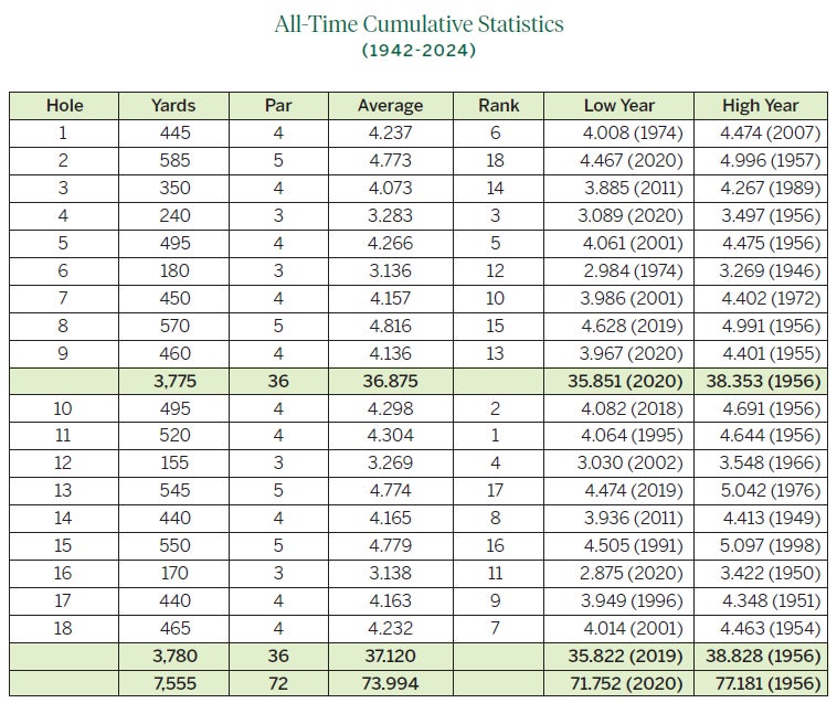 Most years there are a handful of tweaks to the course. That's not really the case this year. Still 7,555 on the card like last year. With that said, Hurricane Helene in September did take out some trees and damage a few greens that had to be repaired. Rory mentioned at some point 4 greens had been altered, while not mentioning which.