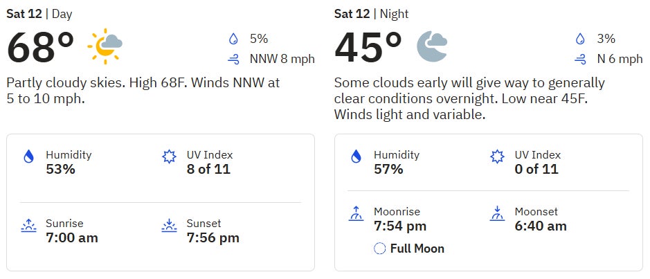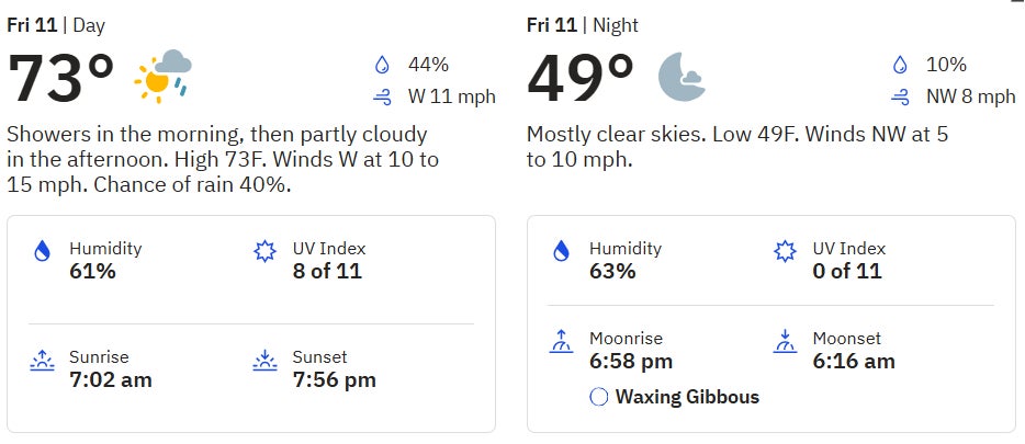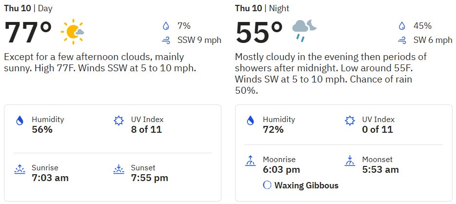 A little bit cool temperature-wise, but one of the better forecasts we've seen in recent years. It feels like recent tournaments have been decimated by rain and thunderstorms, including that scary windstorm in 2023 that brought down a bunch of trees. We might get a little bit of a rinse on Friday morning, but nothing that I would expect to hold up play. Subair should handle that just fine. Obviously tons of rain on Monday might have the course playing a little soft, which makes it play a bit longer but obviously can help to make the greens more receptive. All in all, should make for a great tournament.