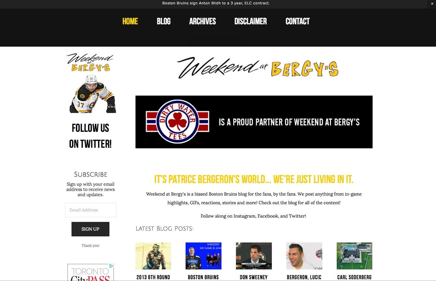10 years ago I didn't know what I was going to do with my life. I was 20, working part time at a school, mainly to pay for my blog and have some fun money. I named it after my favorite player, Patrice Bergeron, and Weekend at Bergy's was born the summer of 2014. It really stemmed from the Bruins' playoff loss to the Canadiens. I was furiousssss after that series. Again, wasn't sure what I was going to do with my life but I had always loved the Bruins and was always on Twitter, so I thought, why not start a blog and put all my hockey thoughts into one place instead of just rage texting my Dad about the team.