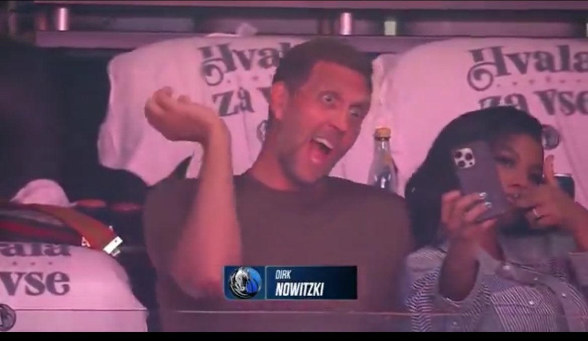 Even in a game that didn't include Ja Morant, it still comes up. This time, we had Dirk and Taylor Rooks recreating his finger fun/grenade celebrations while both were in Dallas for Luka's return
