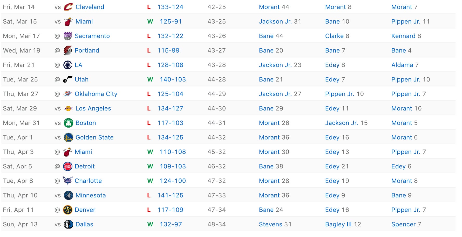 So just add it all up. One of the best defenses in the NBA since the deadline, who is awesome at forcing TOs, is going up against one of the worst ball security teams in the NBA who has not been able to beat anyone good all year long. That feels like a tall task for MEM, especially since they are also a team that looks like a group with a broken spirit. I suppose anything can happen given they do have the talent, but I fear this is more of a matchup problem that they don't really have an answer for.