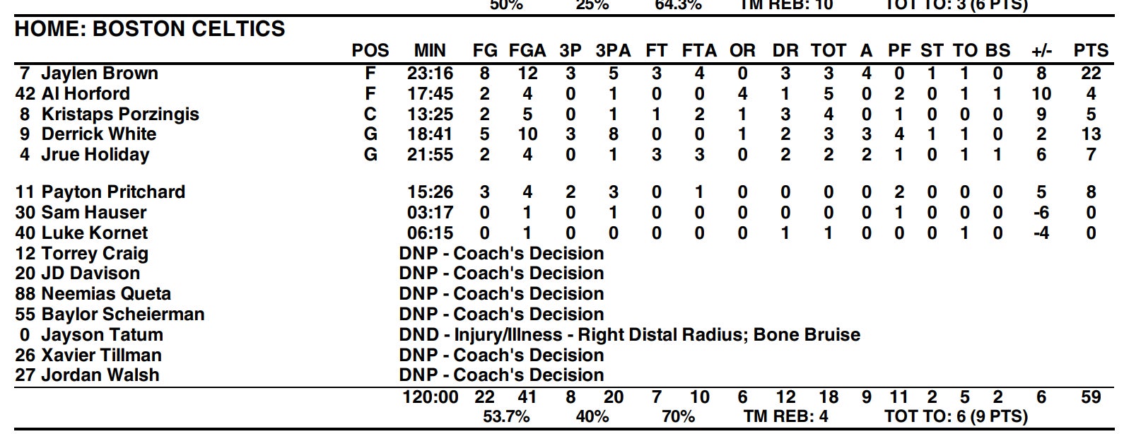 It wasn't just those 3 guys either. Derrick White had 6, Jrue Holiday had 4, Pritchard got his nose in there. Those are the margins the Celts had to win, and they dominated.