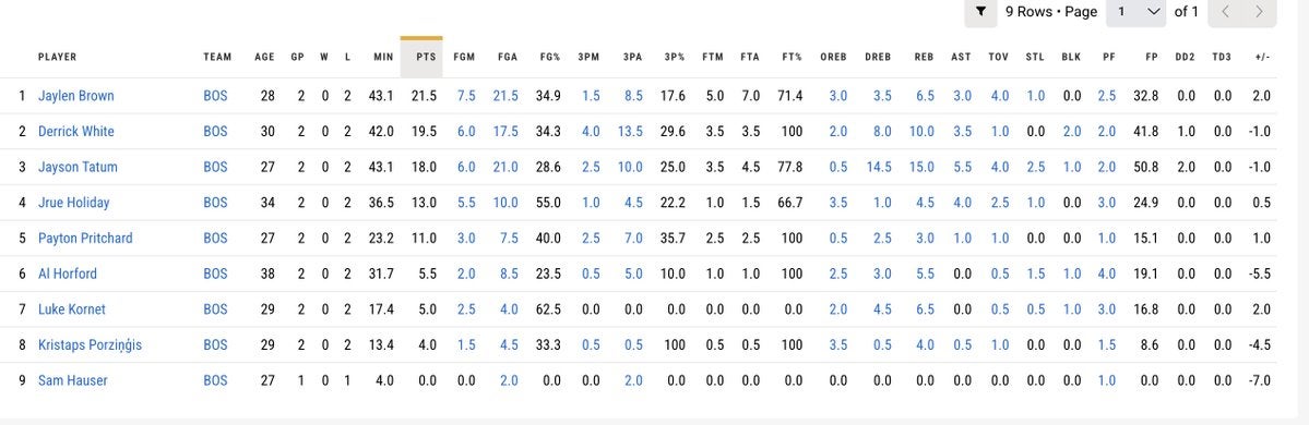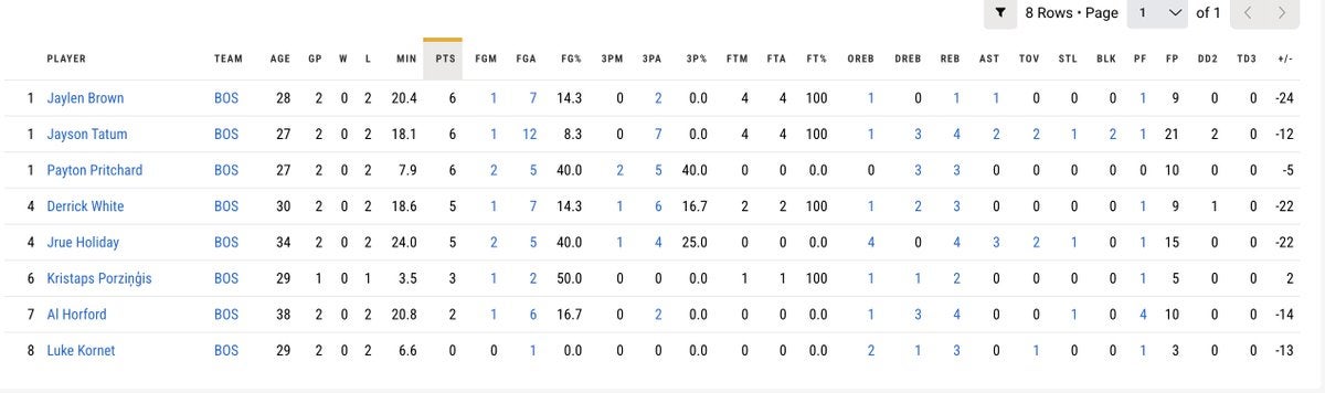 34/19% for Jaylen? 34/29% for White? 28/25% for Tatum? 22/10% for Al?