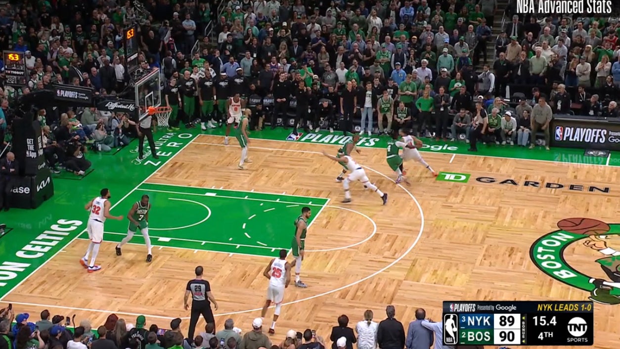 Then came the back to back White misses on clean looks, following by a missed KP putback, followed by a KP offensive foul. After each one of those mistakes, the Knicks scored. A McBride dunk and a Hart 3PM (just like OG's in Game 1). Even after all that, the Celts were still up 15 points with 1:05 left in the quarter. Then, we had the Tatum turnover