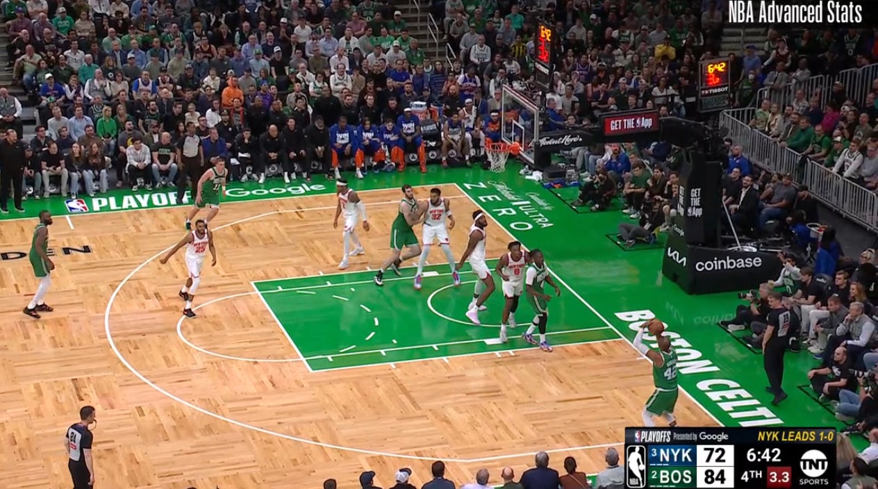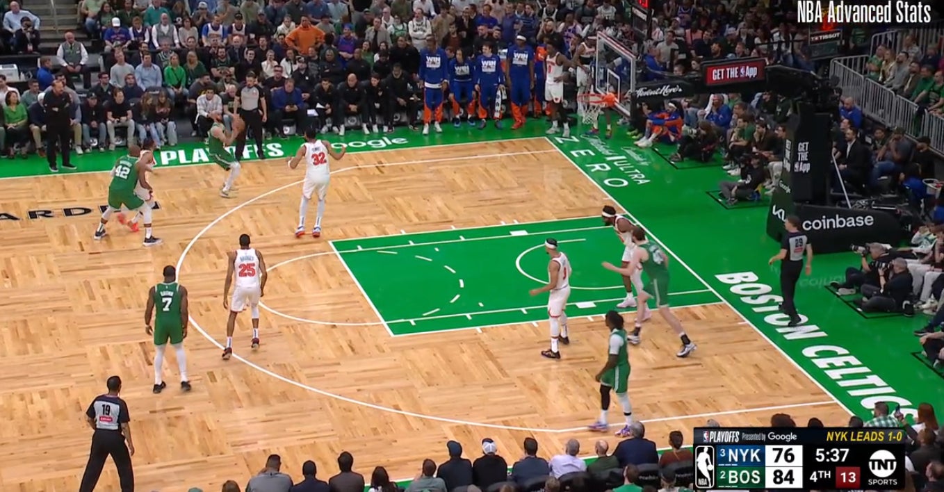 Which was immediately followed by a McBride 3PM. Boom, momentum officially shifted. Listen, we all want Tatum with the ball and him to be making the decisions, but those miscues on his passes are what gave the Knicks life. Sure Jaylen has to catch that ball, but just lob it. The TO to KP on that lob, that pass wasn't even close considering KP is basically dead and can't jump. Those small plays add up, and just like in Game 1 when they built their 20 point lead and immediately gave up a 7-0 run to let the Knicks back in it, last night it was an 8-0 run.