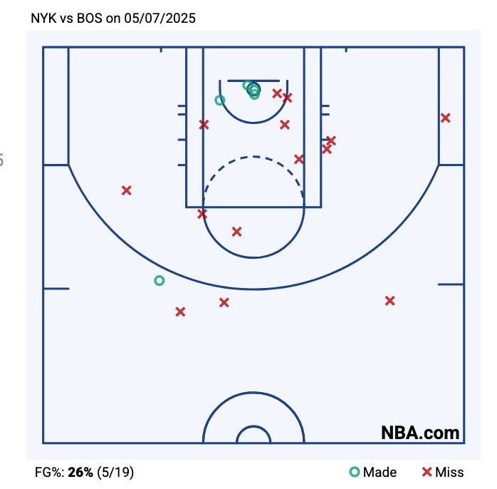 In the regular season, the Celtics shot 57% on 2pt FGA. Against the Magic, they shot 53%. Against the Knicks? Just 47.3%