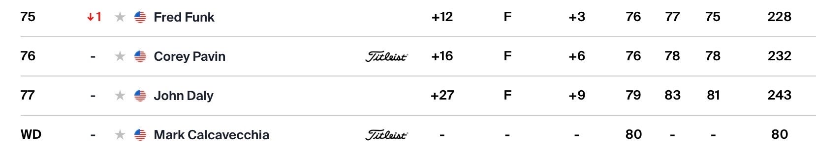 But credit to John Daly for still finishing last weekend's tournament. He could have bowed out after the first round like loser Mark Calcavecchia, who had a tweet I didn't much care for after John Daly posted his gentleman's +27.