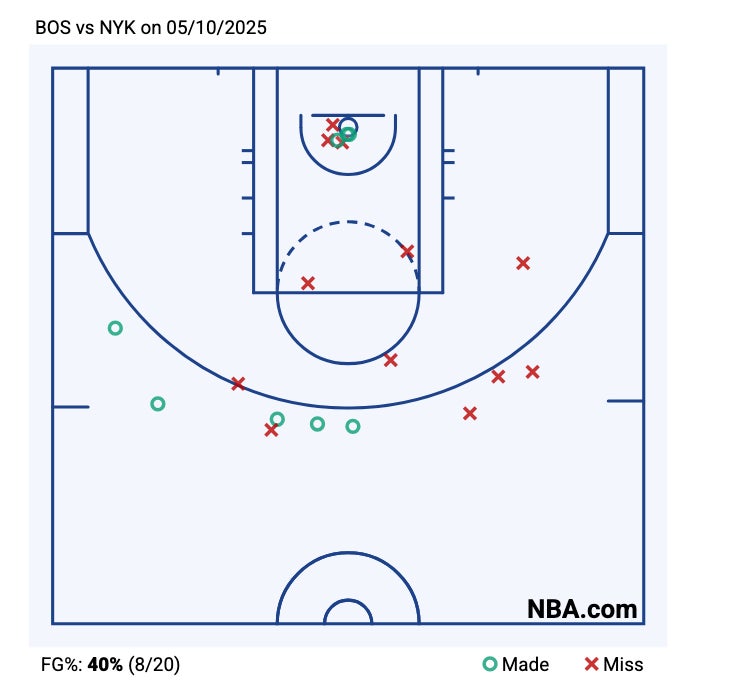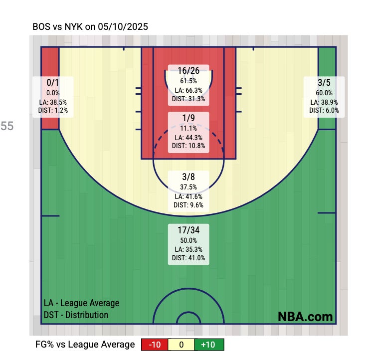 For the series, the Celtics are shooting just 65% in the restricted area and 25.6% in the paint. Those numbers don't even feel possible, yet it's true. Just an impossible number of smoked bunnies all series long, which I find extremely frustrating.