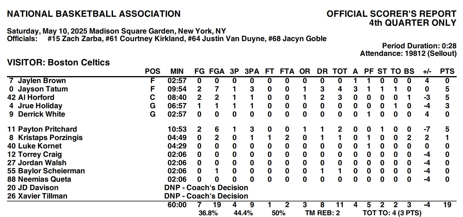 Here's a fun fact that is in no way fun. The Celtics have no scored 20 points in any 4th quarter of this series.