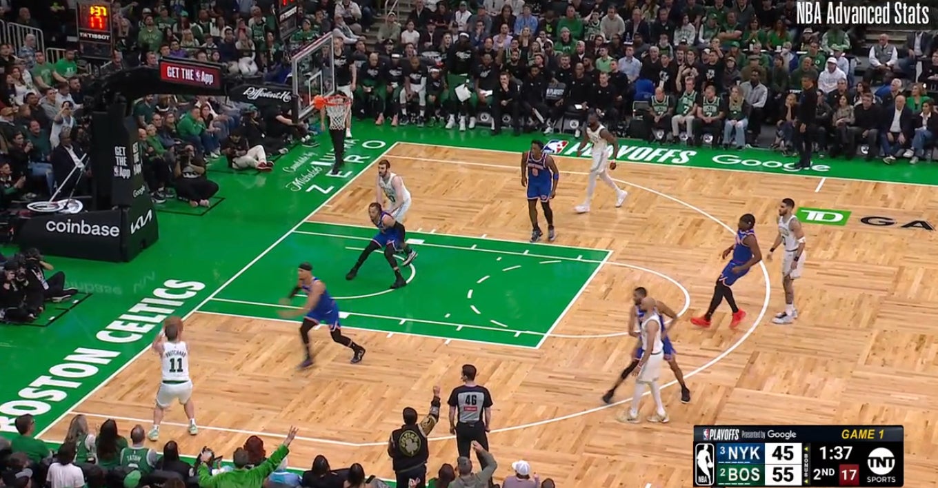 - For some reason, we're still seeing the Celts struggle to punish the Knicks for switching. When they play drop, that's no problem. The pull up 3s were deadly. But switches? The one thing we all expected the Knicks to struggle with and be a real advantage is actually the opposite. KAT and Robinson have been able to survive on the perimeter. When we saw Tatum get switched onto Brunson, he lost those battles.