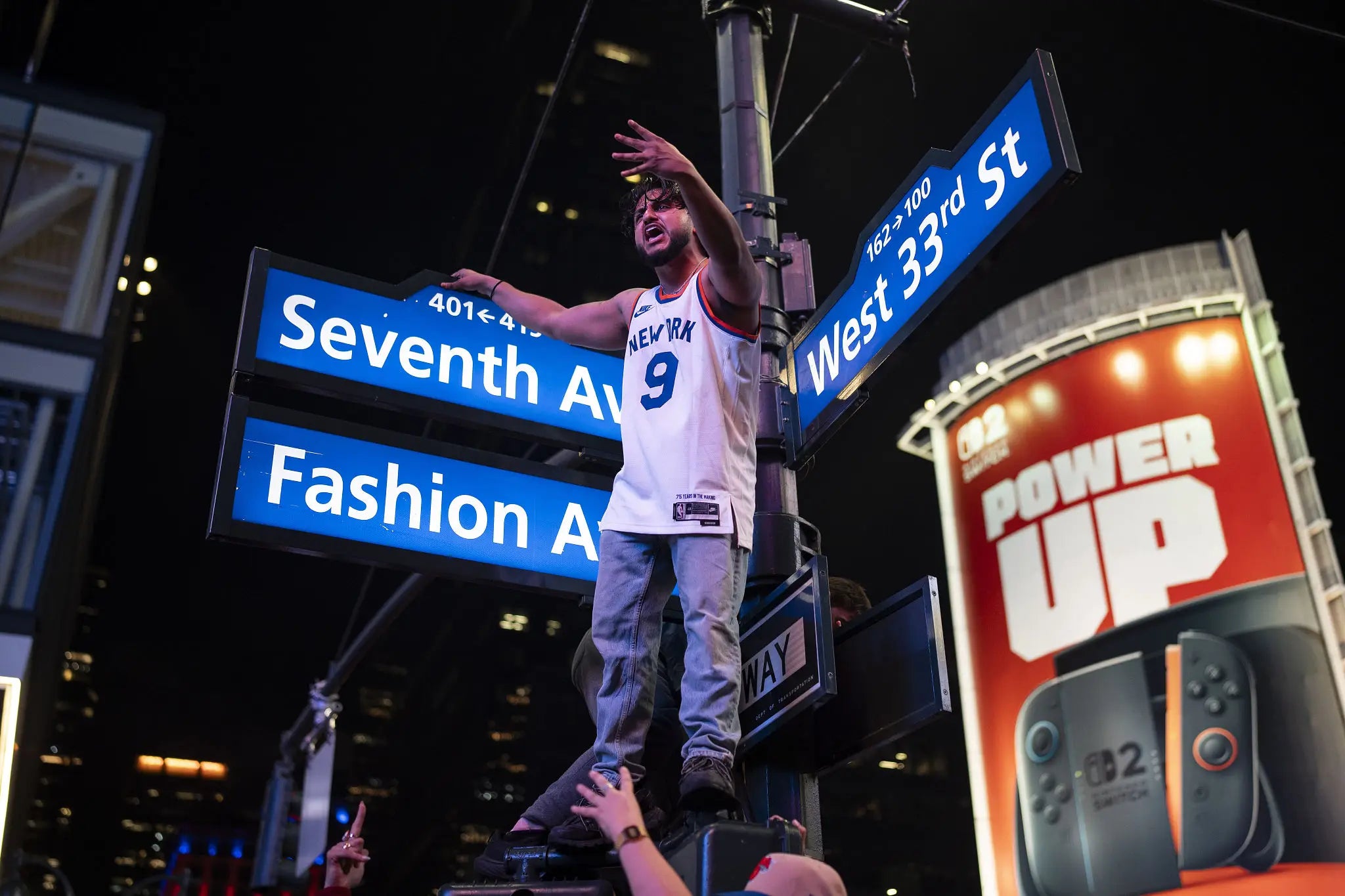 I mean if we have kids climbing billboards in Midtown with slides on after a second round series victory, what happens if the Knicks make the Finals? I'm not sure if I even want to know the answer considering this is the kind of shit taking place right now: