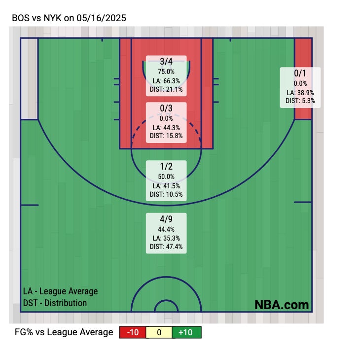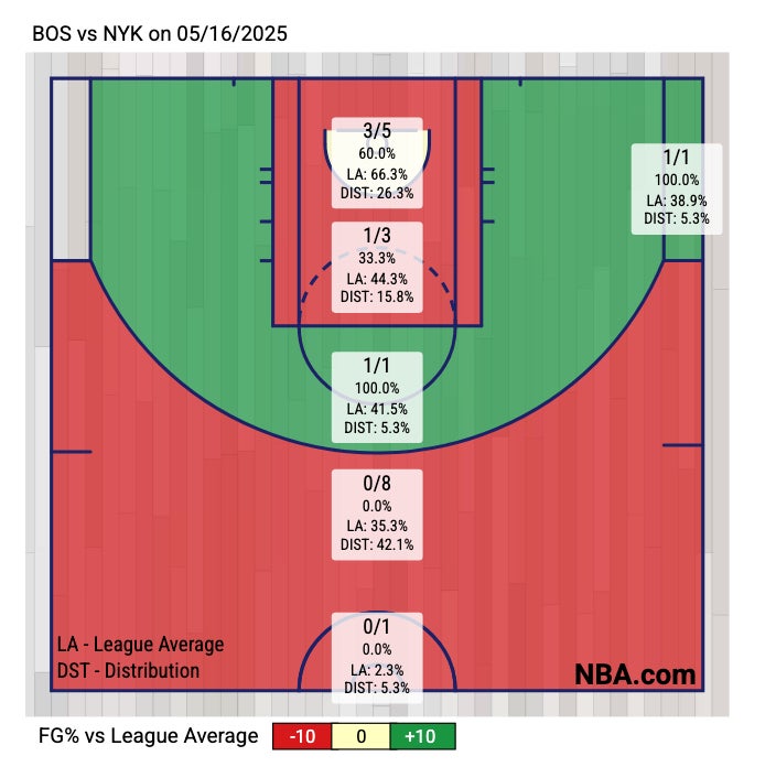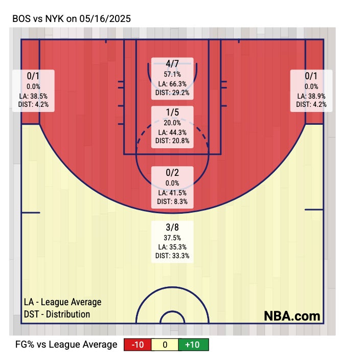 For the series, the Celtics finished shooting just 68% at the rim, 23% in the paint (non-RA), and 39% from midrange. AS A TEAM.