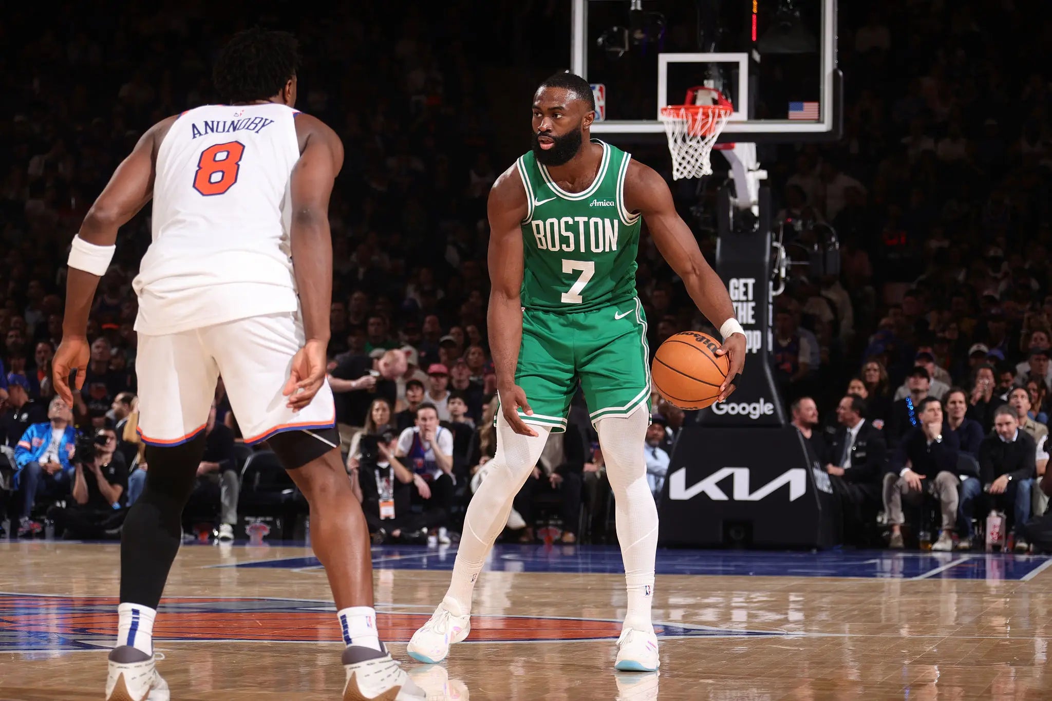 That's just bad basketball. Jaylen has position on Brunson with no help. KP hasn't made a single shot outside of the restricted area all series at the time of that possession, so what is the thought process here? A contested 2FGA over OG Anunoby compared to a Jaylen Brown post up over a guard with no help cannot be the decision in that spot.