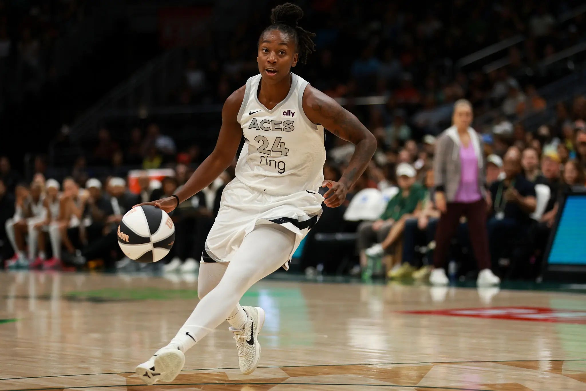 …The alleged profanity is believed to have been directed at Jewell Loyd, who joined the Aces during the 2025 offseason after 10 seasons with Seattle, the source said…Loyd requested a trade from the Storm last offseason following an investigation into its coaching staff for violations of workplace conduct. The investigation, which Seattle hired outside counsel to conduct, concluded with no evidence of wrongdoing on the Storm’s behalf.