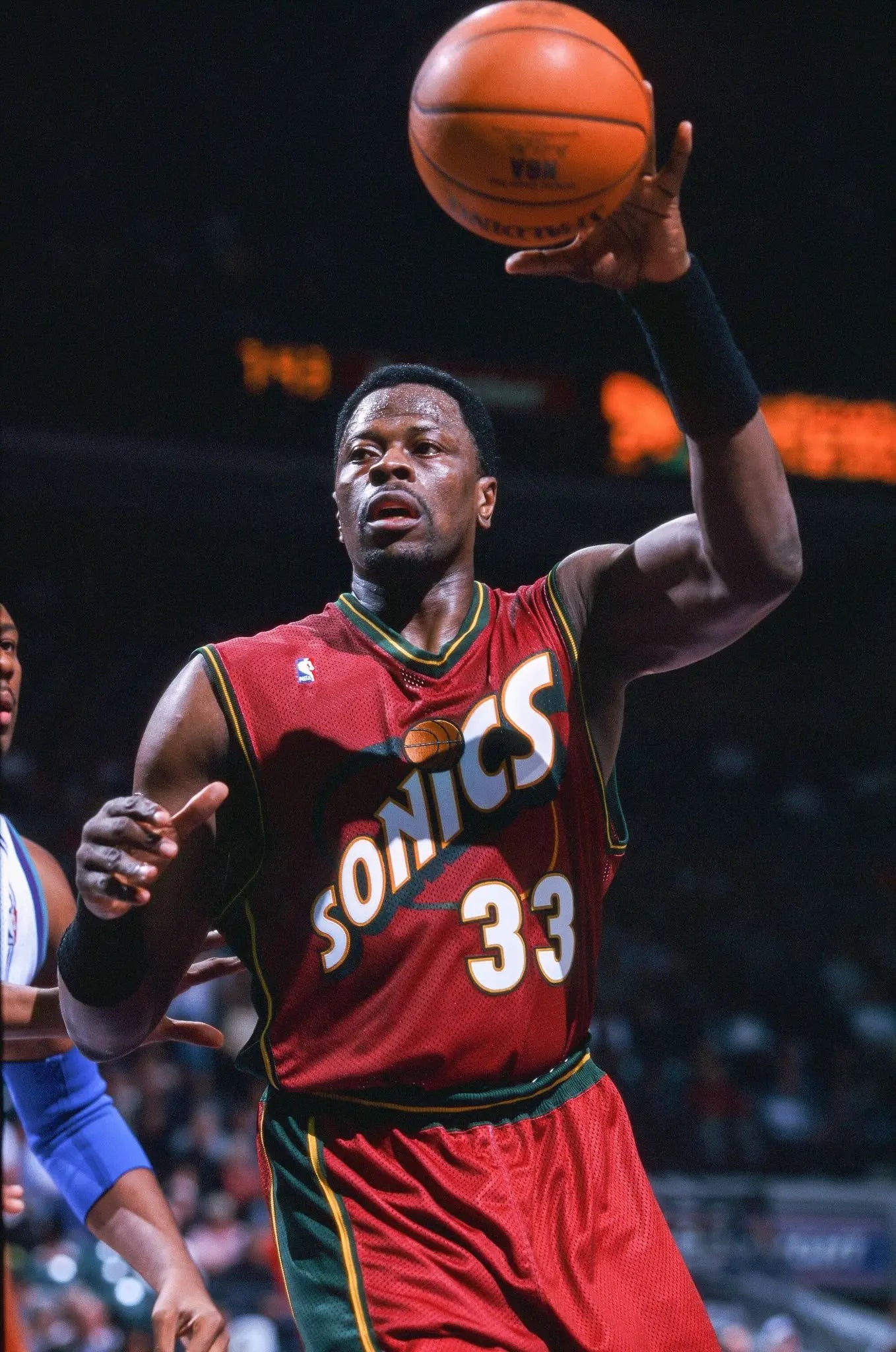 To be fair to Big Pat, the Sonics were doing him no favors with these hideous jerseys. Especially when you consider how great the classic Sonics jerseys were. No one can look good in these godawful things.